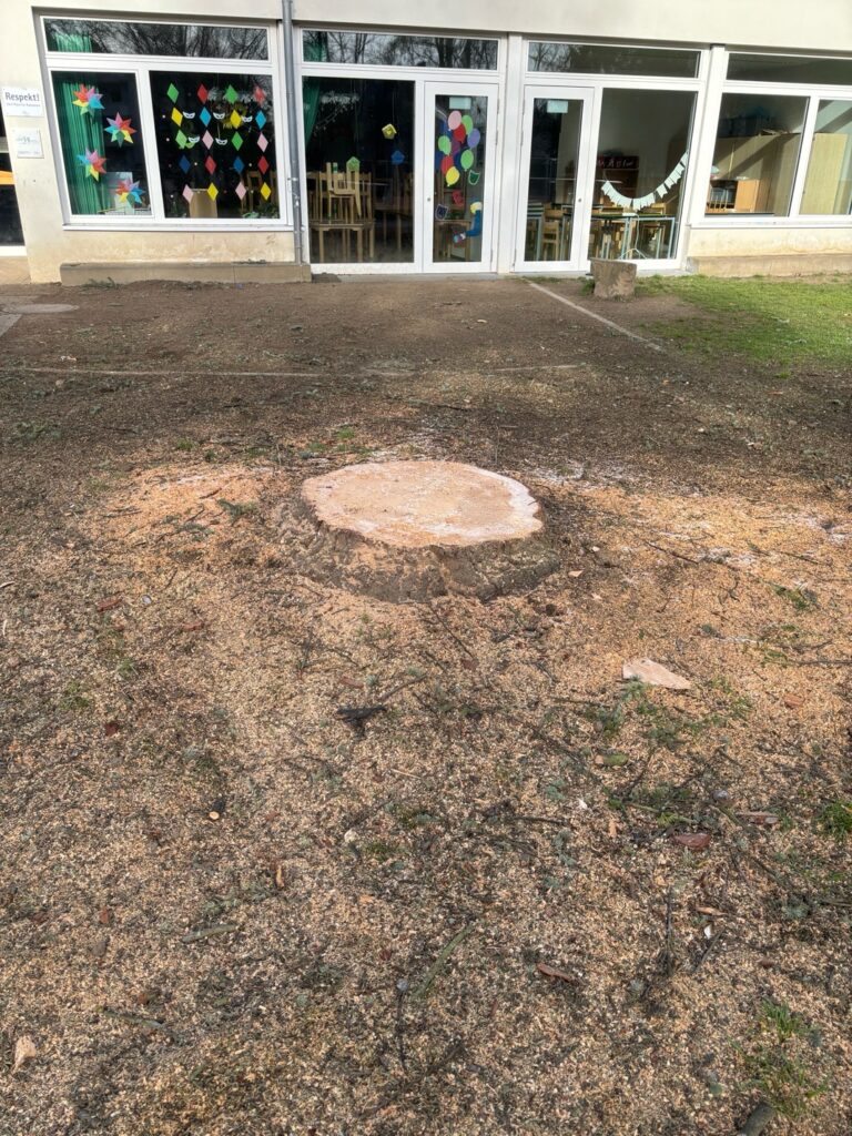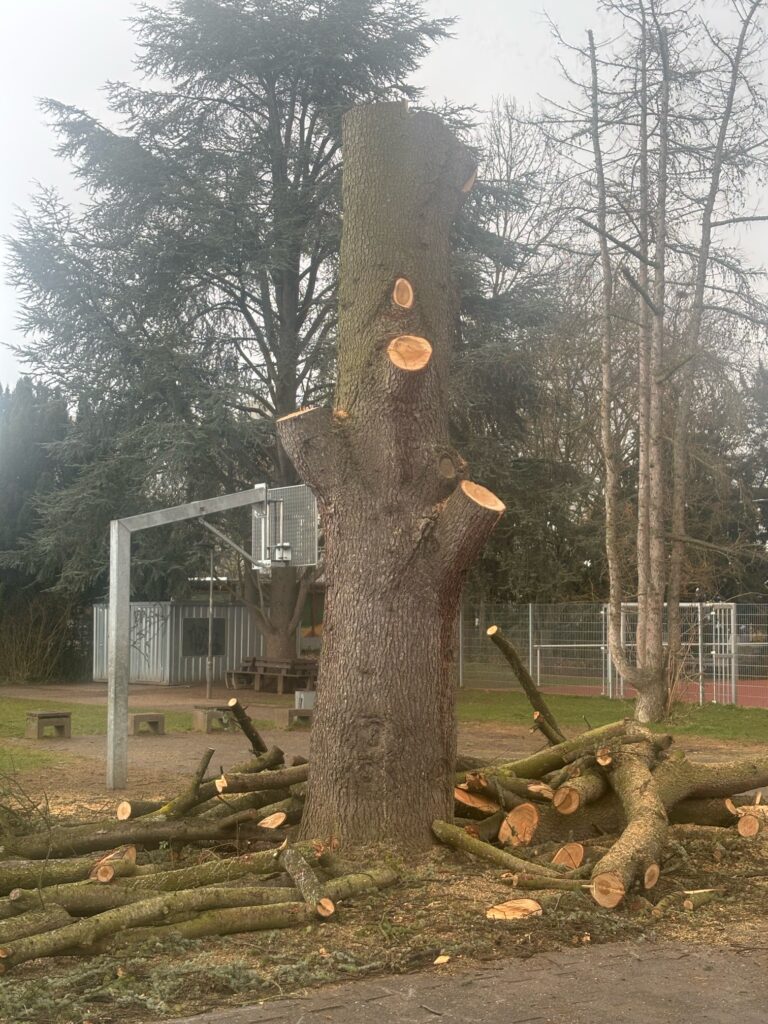 Es ist traurig! Leider ließ sich der Baum aber nicht mehr retten und so wurde er gefällt bevor Äste abrechen und Menschen hätten verletzt werden können.