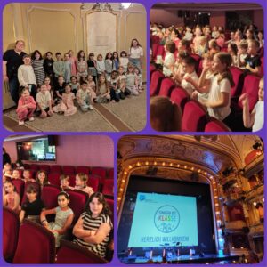 Nach vielen Wochen des Übens waren viele unserer Zweitklässler mit ihren Eltern heute im „Großen Haus“ des Staatstheaters Wiesbaden. Denn hier war an diesem Tag Einiges los: Kinder aus acht Wiesbadener Grundschulen hatten ihren Auftritt. Aus dem Parkett erschallen alle geübten Lieder, während die Gesangcoaches auf der Bühne den Gesang anleiteten. Eine tolle Liveband unterstützte die Kinder.