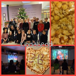 Heute traf sich die Klasse 3b am Nachmittag in der Schule. Nach einer kleinen Wichtelschnitzeljagd und einigen Spielen startete der Kinoabend. Von den Eltern wurden wir mit Pizza und Popcorn versorgt. Wir hatten einen tollen und lustigen Abend in der Schule. Von C. Schwarz